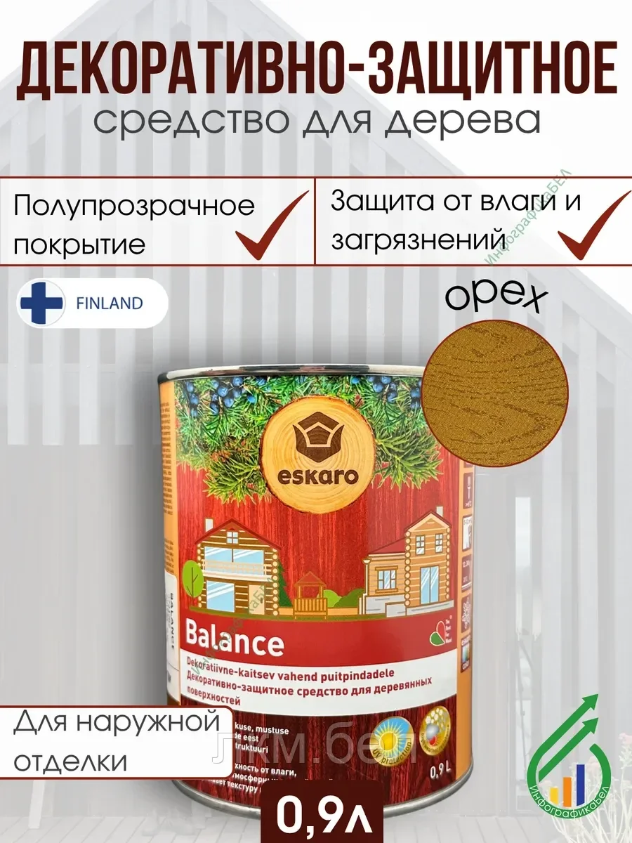Декоративно-защитное средство для дерева Eskaro Balance орех 0,9л Финляндия